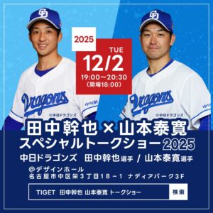 出演:中日ドラゴンズ・田中幹也選手、山本泰寛選手(司会:大澤広樹アナウンサー)